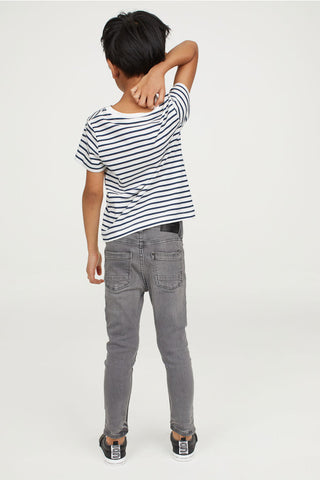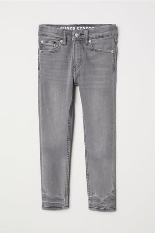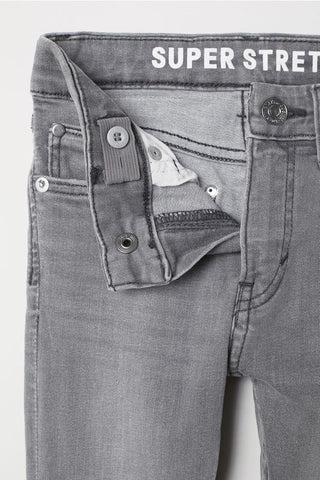 Adjustable elasticized waistband and zip fly with snap fastener.